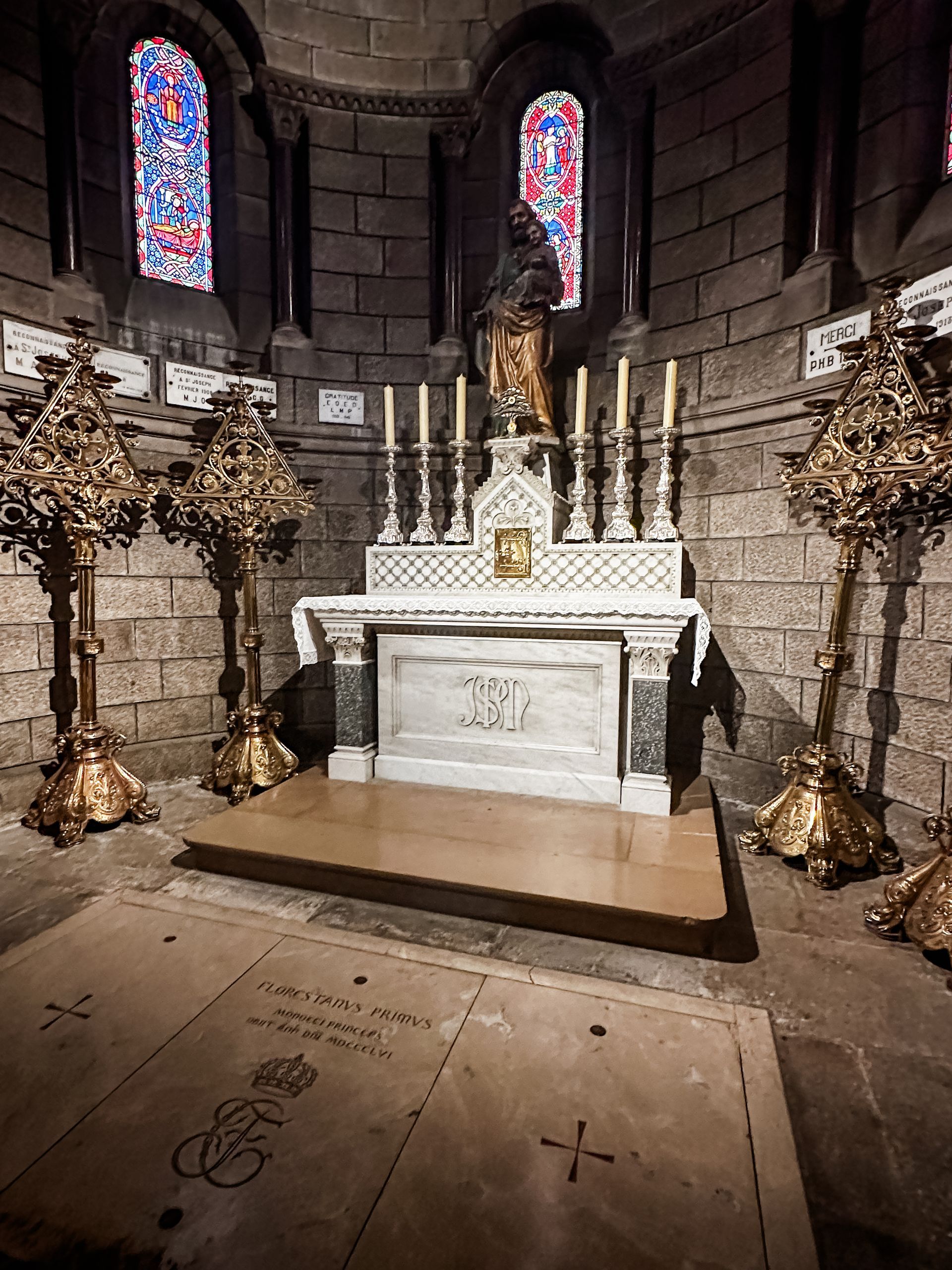Within the cathedral walls is where many of the Grimaldi family members are buried, including Prince Rainier III and his wife Grace, Princess of Monaco. Also found here is the transept, the high altar, and the episcopal throne.